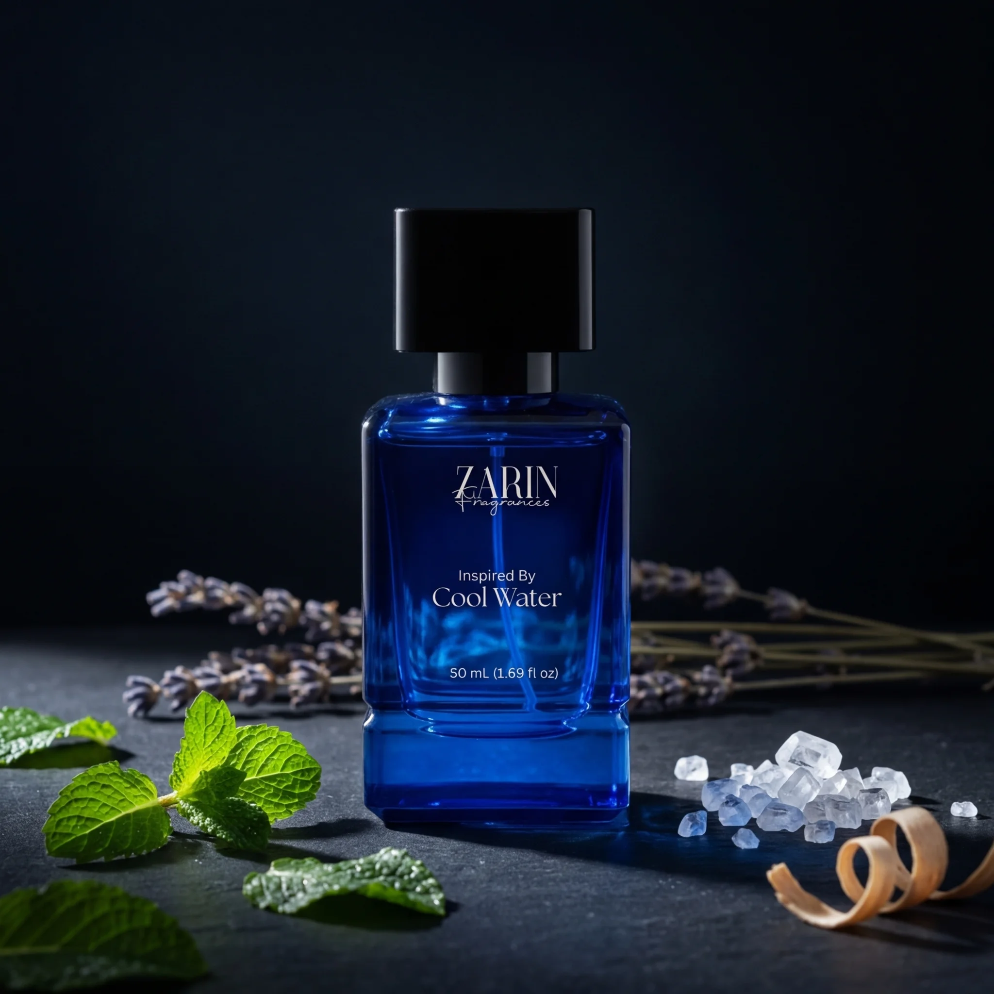 Sea water, Lavender, Mint, Green Notes, Rosemary, Calone and Coriander.